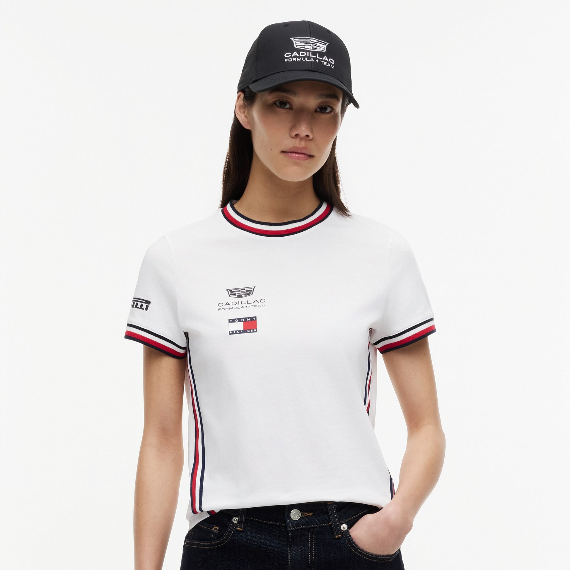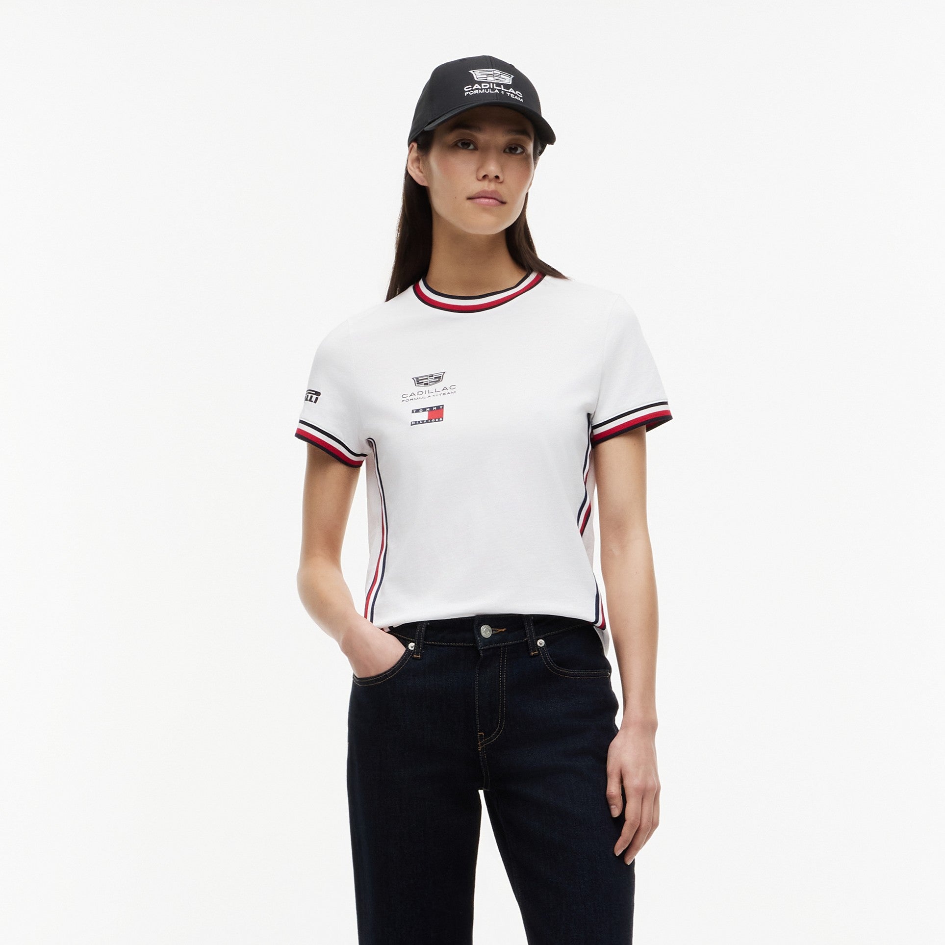 Show your support for the Cadillac Formula1 Team in style with the Cadillac F1 Team 2026 x Tommy Hilfiger Cropped Tee for Women in crisp white. This premium women’s tee blends bold American motorsport-inspired design with iconic Tommy Hilfiger fashion, creating a standout piece for race weekends or everyday wear.