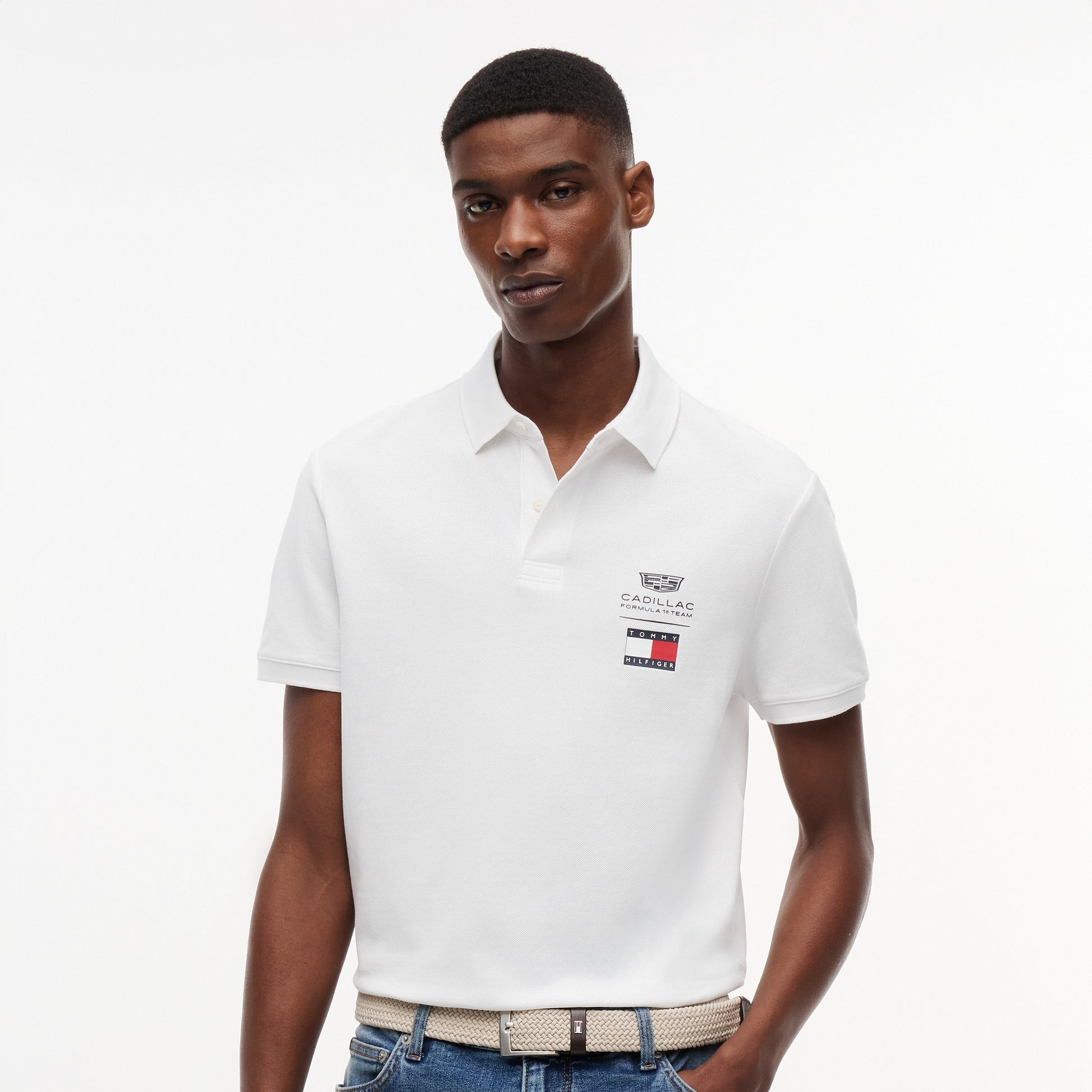 Combine American motorsport heritage with refined casual style in the Cadillac F1 x Tommy Hilfiger Logo Polo for Men in classic white. This premium men’s polo blends classic design with bold Tommy Hilfiger x Cadillac Formula 1 Team branding for standout everyday appeal.