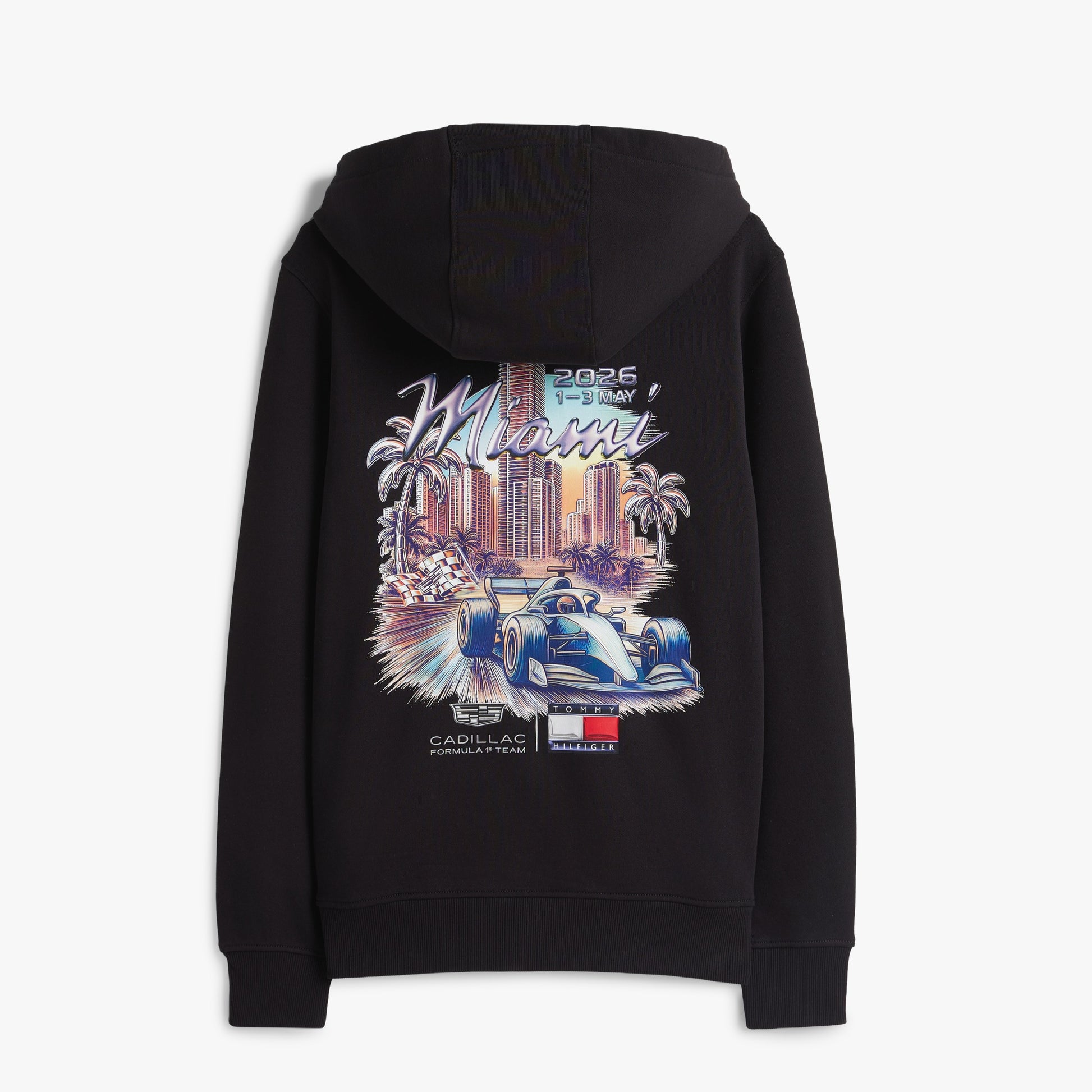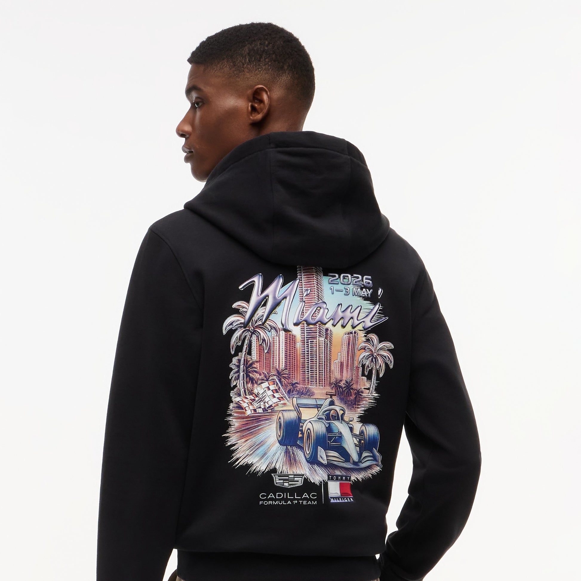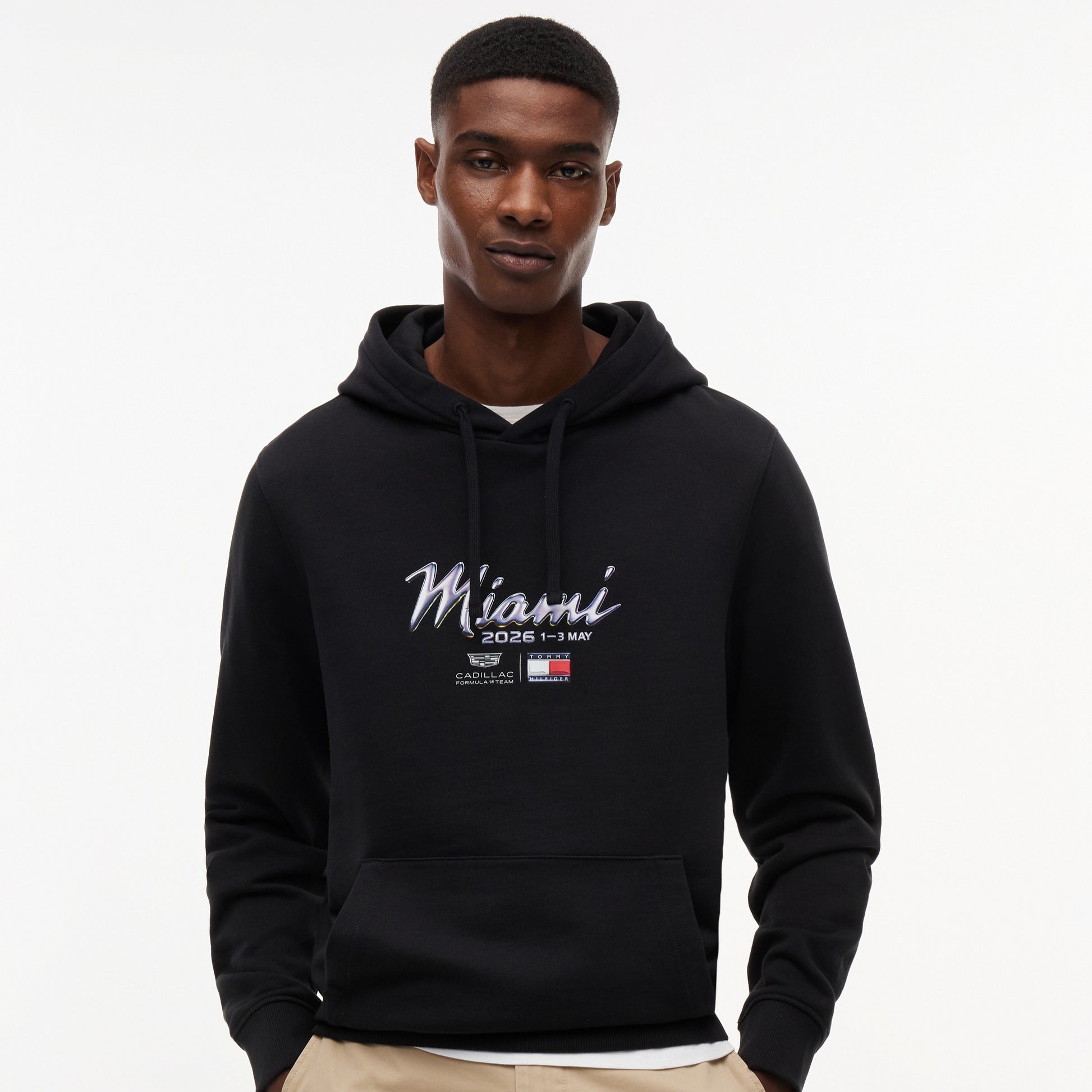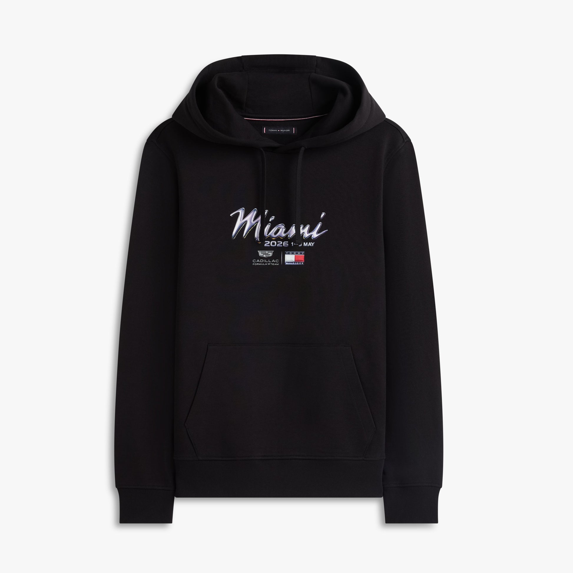 Inject premium American motorsport style into your wardrobe with the Cadillac F1 x Tommy Hilfiger Miami Hoodie for Men in black. Part of the official fanwear collection celebrating the Tommy Hilfiger x Cadillac Formula 1 Team partnership, this men’s hoodie blends bold graphic design with contemporary casual appeal.