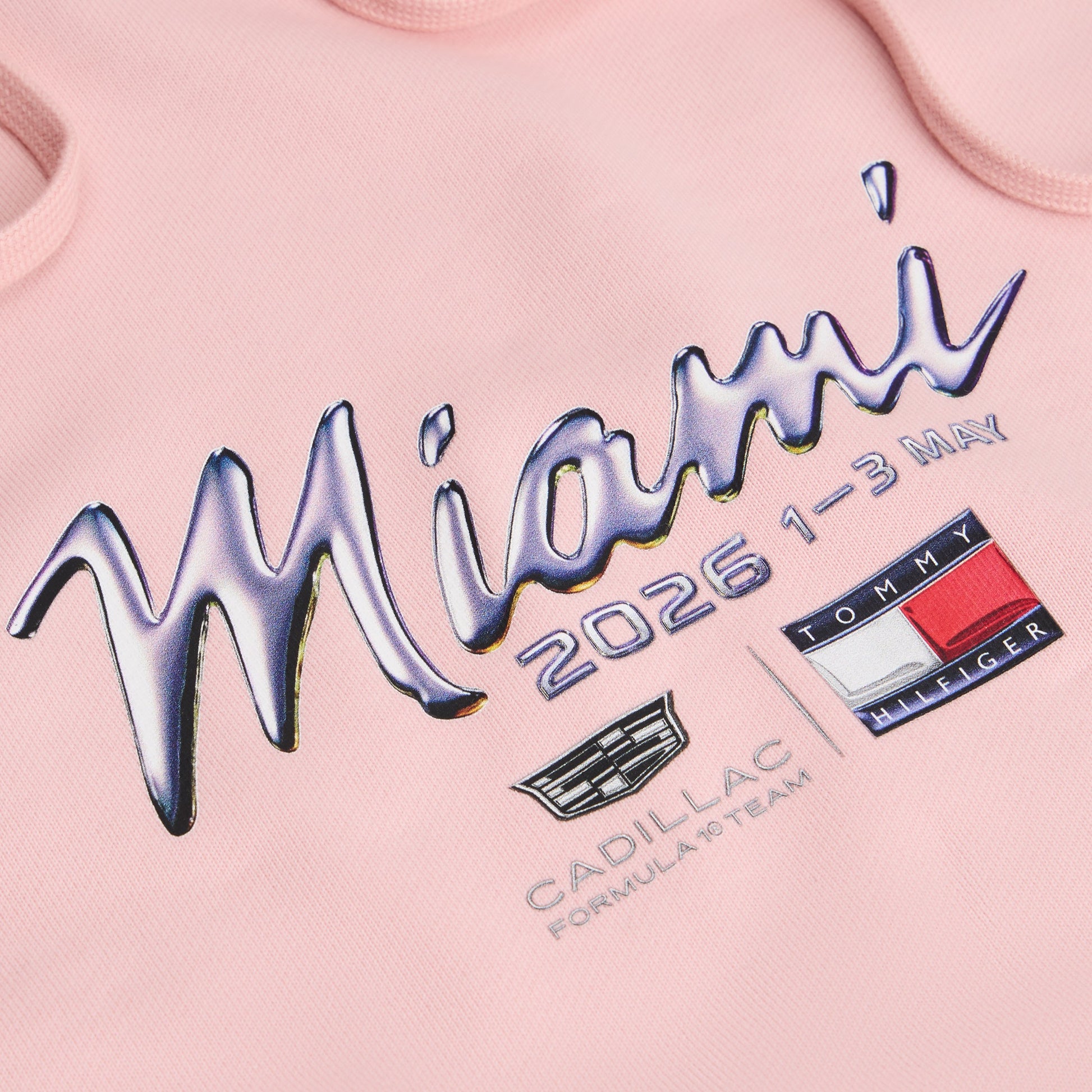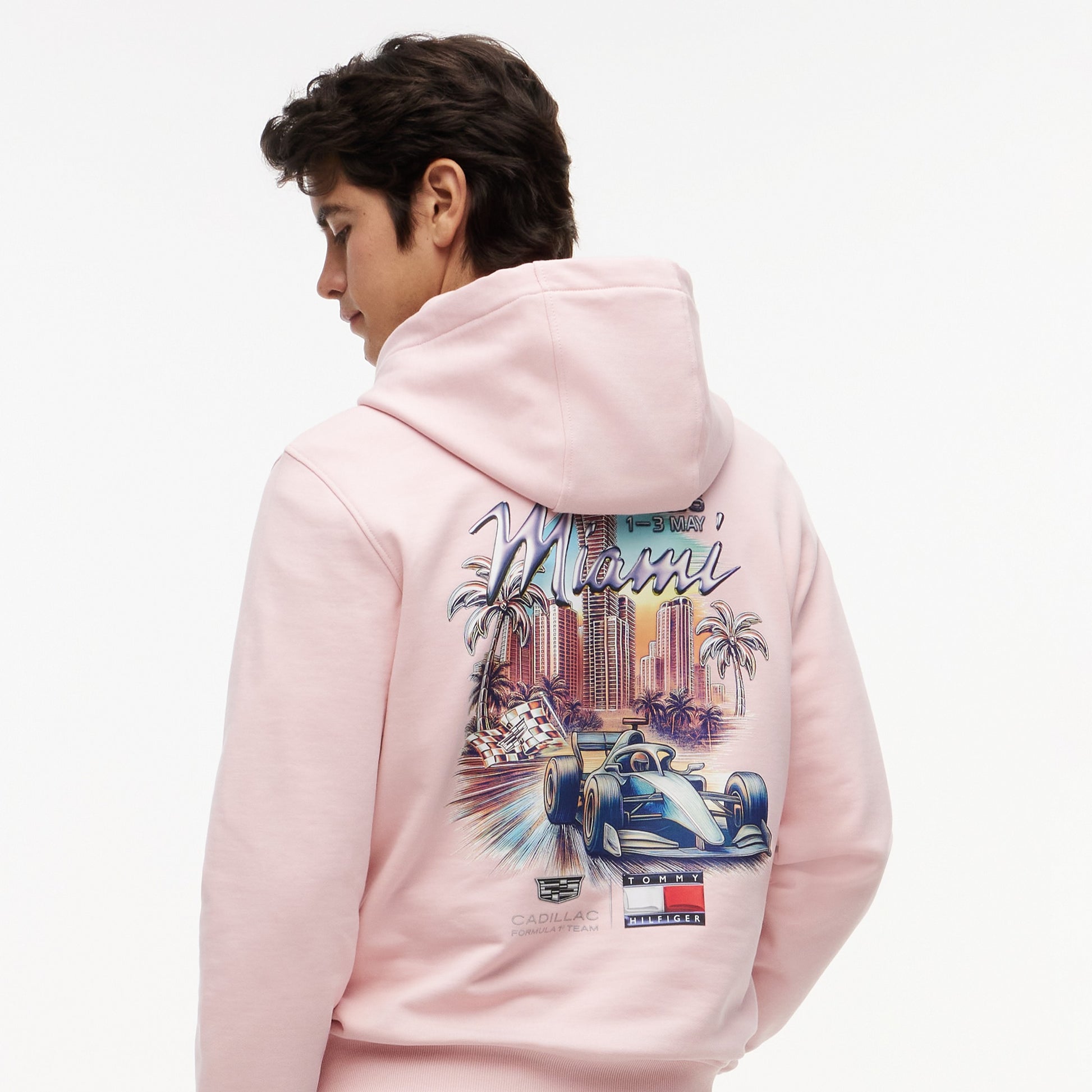Made from soft, cosy fabric with a relaxed fit and practical kangaroo pocket, it features standout Miami-inspired graphics alongside authentic Tommy Hilfiger x Cadillac Formula 1 Team branding.