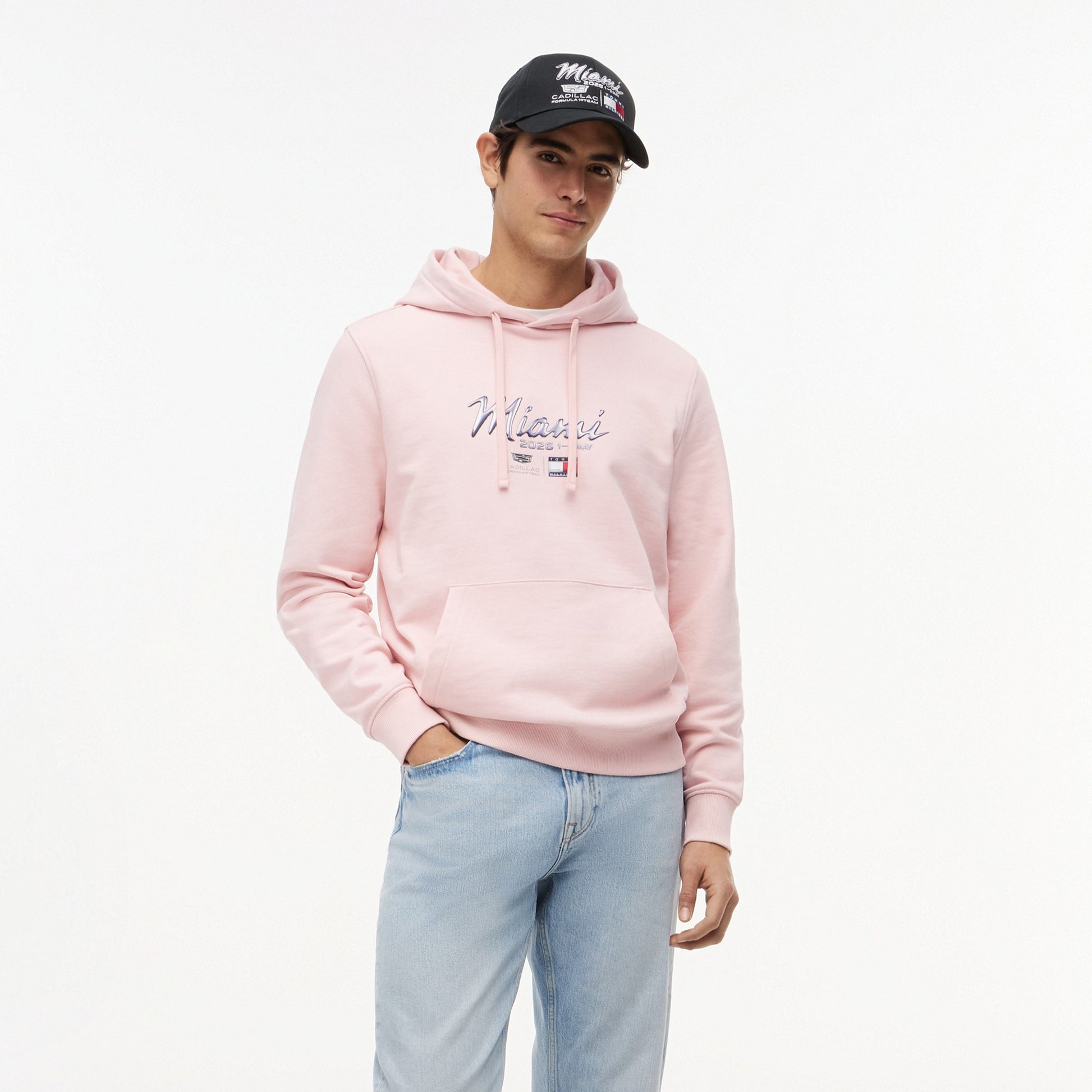 Inject premium American motorsport style into your wardrobe with the Cadillac F1 x Tommy Hilfiger Miami Hoodie for Men in delicate pink. Part of the official fanwear collection celebrating the Tommy Hilfiger x Cadillac Formula 1 Team partnership, this men’s hoodie blends bold graphic design with contemporary casual appeal.