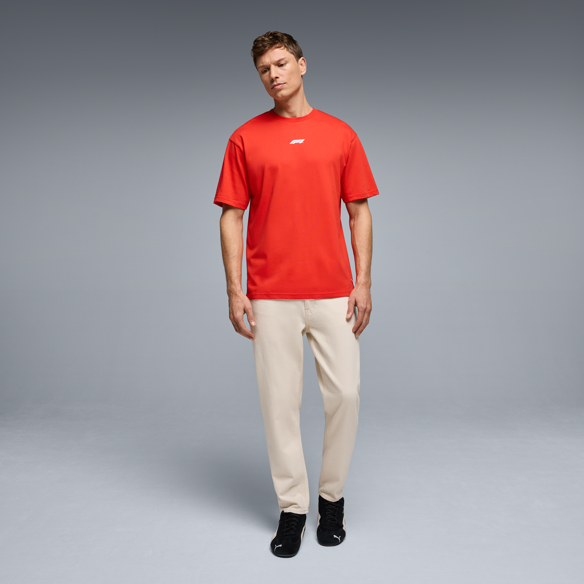 Stand out in motorsport style with the F1 Racing Line Tee for men in Hot Red. Featuring a classic crew neck, modern fit, and official F1 branding, this T-shirt is perfect for race days, casual wear, or adding a bold Formula 1 touch to your everyday wardrobe.