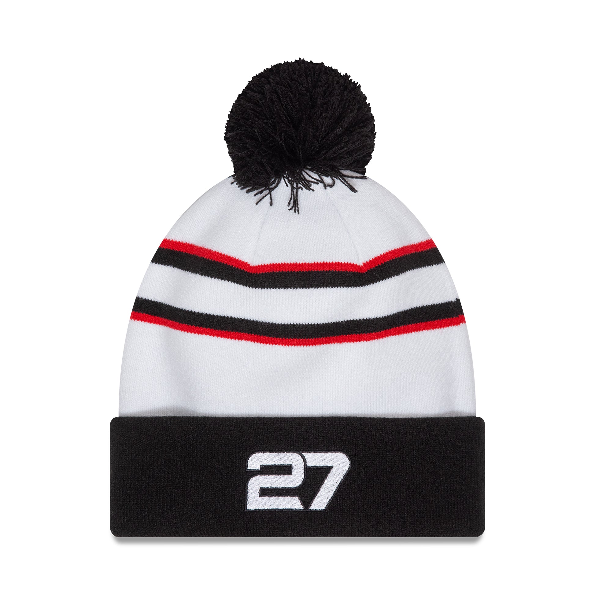 Nico Hulkenberg Cuff Beanie for the 2024 Formula 1 World Championship. Haas F1 Team logo. Made by and featuring the New Era flag.