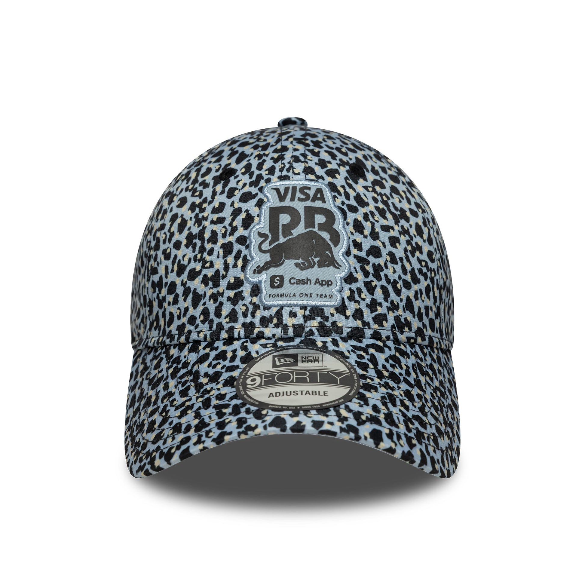 The Visa Cash App RB F1 Leopard 9Forty Cap – Soft Blue delivers bold Red Bull Racing style with a playful twist.
